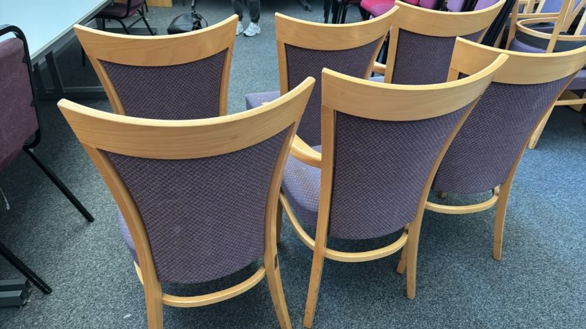Wooden & Purple Patterned Chairs x6