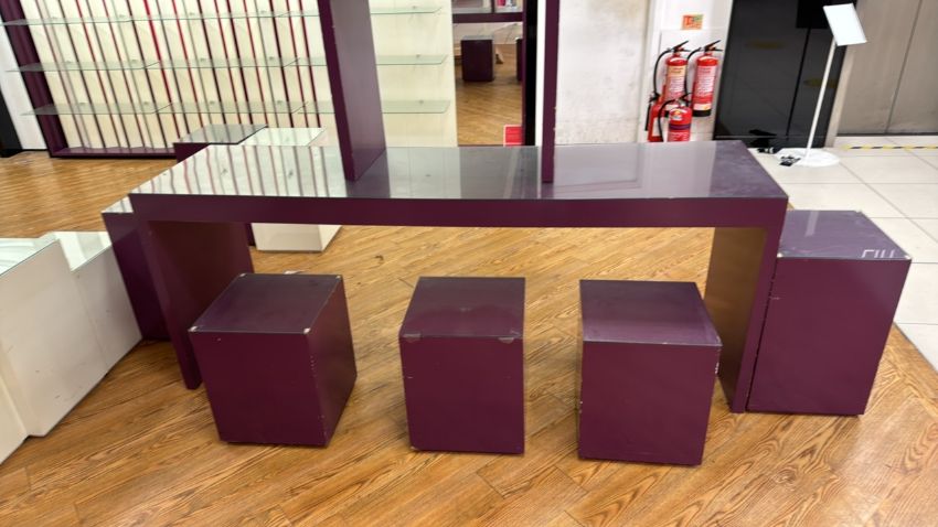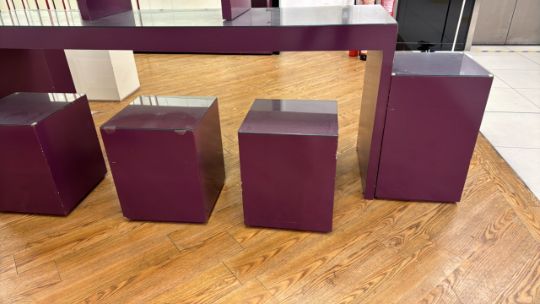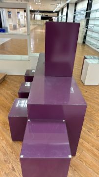 Purple Wood Benches and Display Boxes