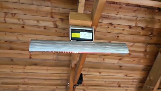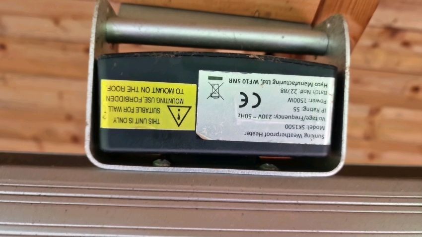 Includes cigarette bins, bench, and heat lights