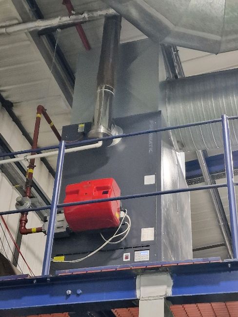 Powrmatic Industrial Heating Unit & Gantry Model. CPXG300UD Serial. H300208517842 Year. 2020 Approximate Dimensions: Height - 226cm Width - 160cm Depth - 110cm This Lot includes only industrial heating unit and Gantry, the piping and the vent above the heating unit are not included. Gantry is secured to Warehouse structure via Bolts.
