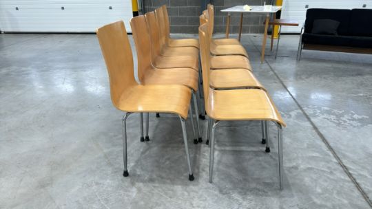 Wooden Chairs With Metal Frame x10 Approximate Dimensions: Height - 90cm Width - 40cm Depth - 45cm Location - Doncaster DN9