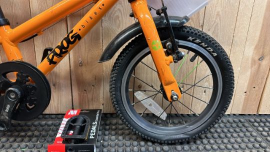 For a first pedal bike the Frog 40 has the two qualities you need: comfort and safety. It is amongst the lightest bikes for its 14" wheel size with easy to reach brakes, meaning it is easy for them to control and stop. The Frog 40 is a brilliant first bike to introduce your little one to pedalling and get them cycling with confidence. Key Features: Patented Frog cranks set closer together increasing comfort and efficiency for kids Easy to reach brake levers Safety steering lock to prevent oversteering Weighing only 6.3kg 14 inch wheels with Kenda 14 inch x 1.5 inch Tyres Easy reach Tektro brakes with adjustable levers for smaller hands
