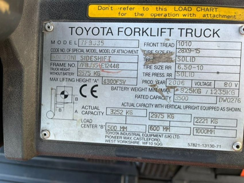 2006, TOYOTA - 3.5 Tonne Electric Forklift (2900 hours)