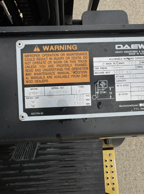 DAEWOO - 1.5 Gas Forklift (Container Spec)
