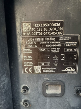 2020, LINDE H25 - Gas Forklift (container spec - 5,629 hours)