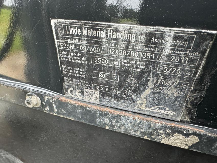 LINDE, 2.5 Tonne Electric Forklift Truck - 5.5 Triple 2.5 Tonne at 600 Load Center