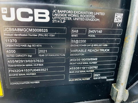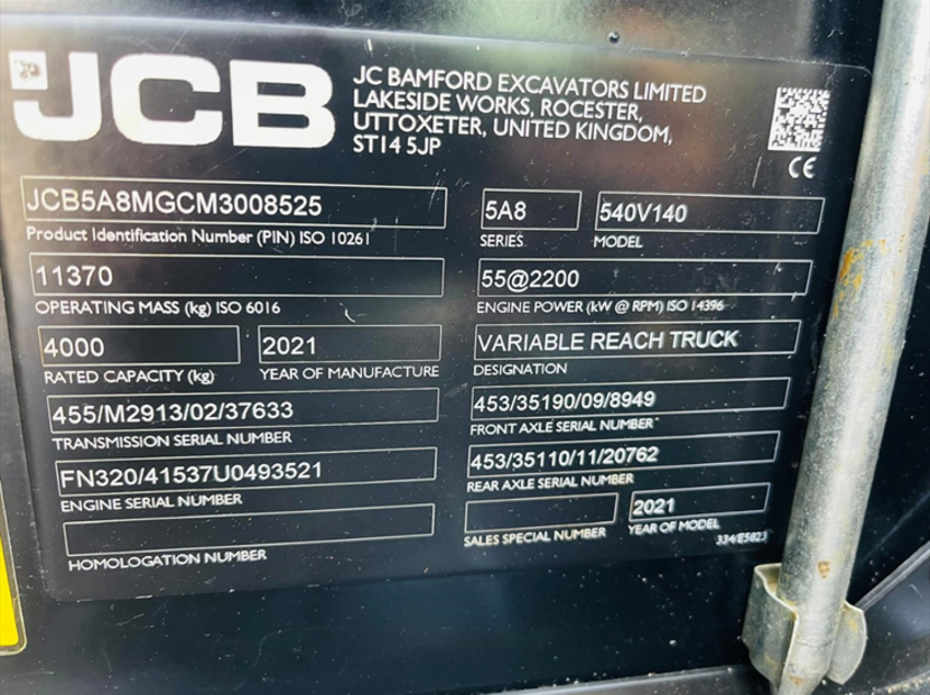 2019 - JCB 540-140 HI VIZ TELEHANDLER (4963 hours, Fork Positioners, Air Con, Camera, 14m Reach)