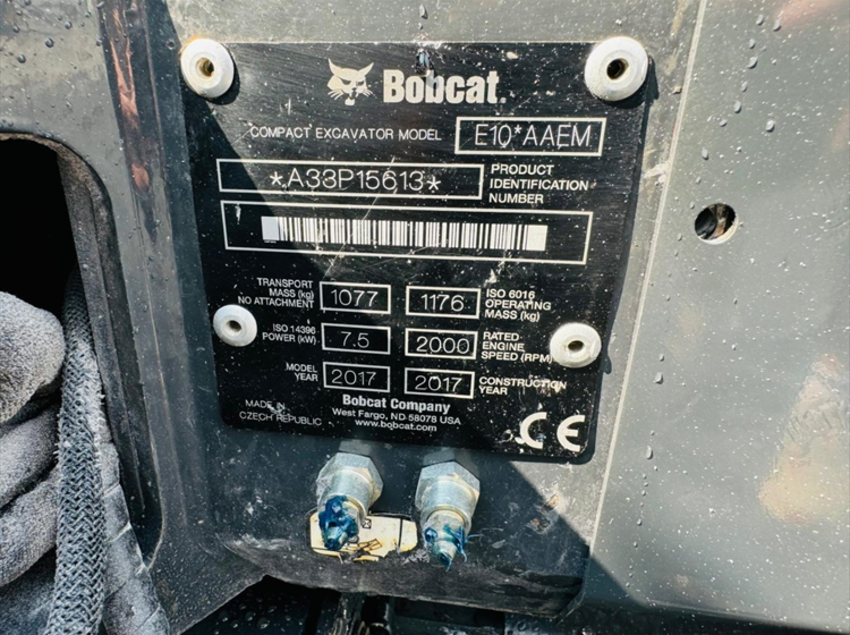 2017 - BOBCAT E10 EXCAVATOR (2599 hours - Quick Hitch & 3 Buckets)