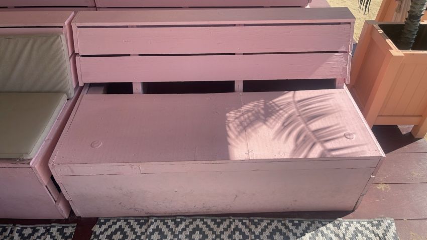 Pink wooden slatted sofa