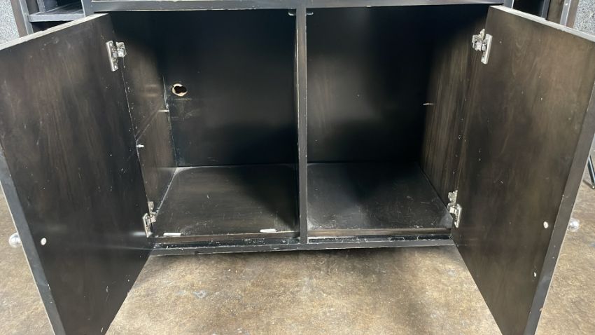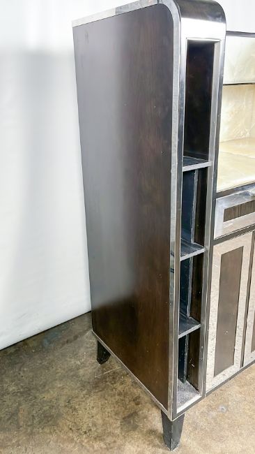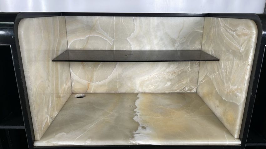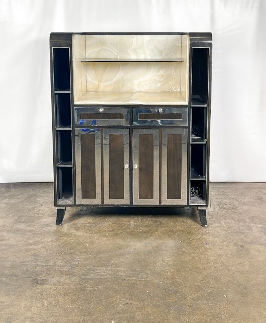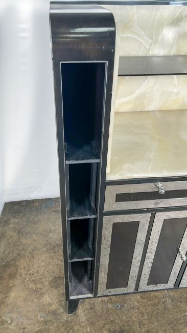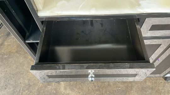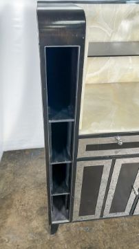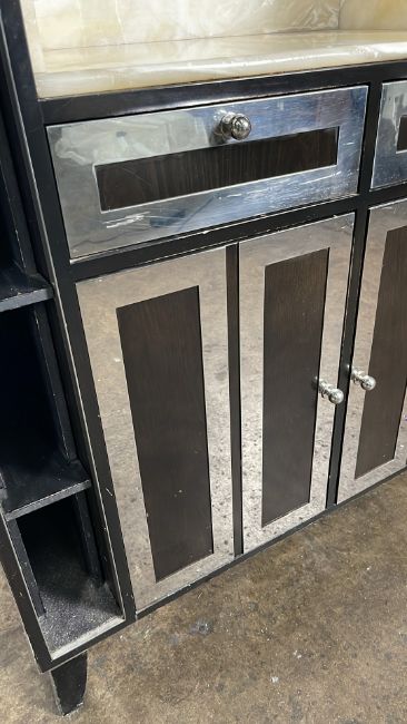Black Wood and Marble Console Unit From the Iconic Blue Bar Approximate Dimensions: Height - 144cm Width - 115cm Depth - 55cm Ref - 383 Location - unit 11