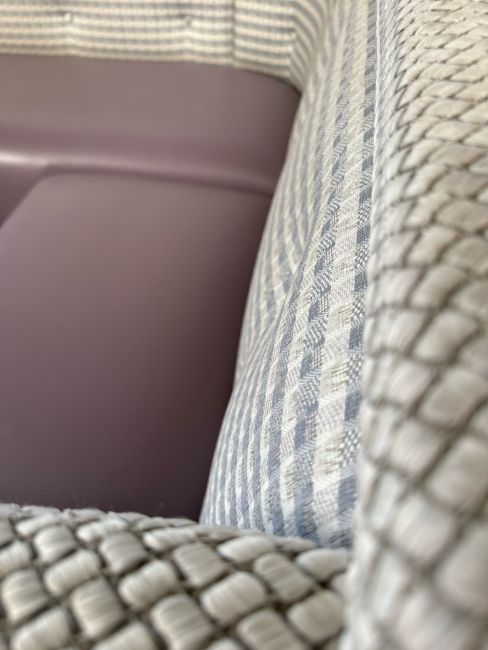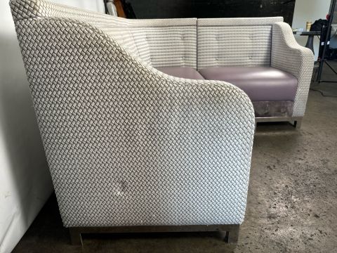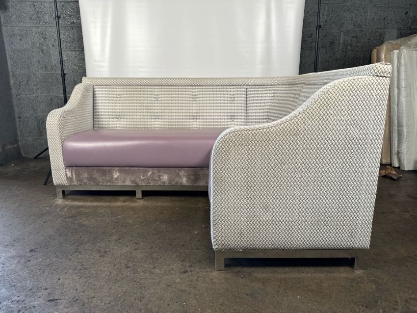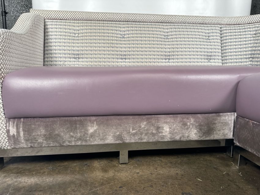 Ben Whistler Banquette Sofa Commissioned by Robert Angell Designed for The BerkeleyThe banquette has been upholstered in a combination of three different fabricsCan be seen pictured in The Collins Room at The Berkeley for illustrative purposes only Approximate Dimensions: Height - 85cm Width - 150cm Depth - 145cm Location - Unit 11 Ref - 59