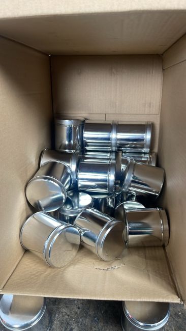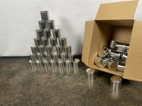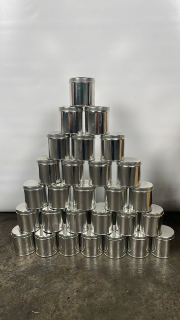 Silver Metal Jars with Lids x250 Approximate Dimensions: Height - 9cm Width - 8cm Depth - 8cm Ref - 133 Location - Unit 11