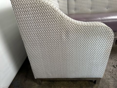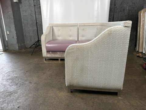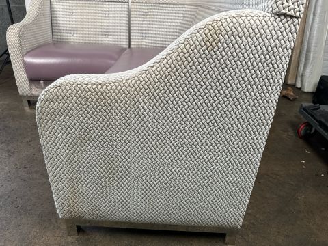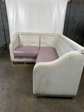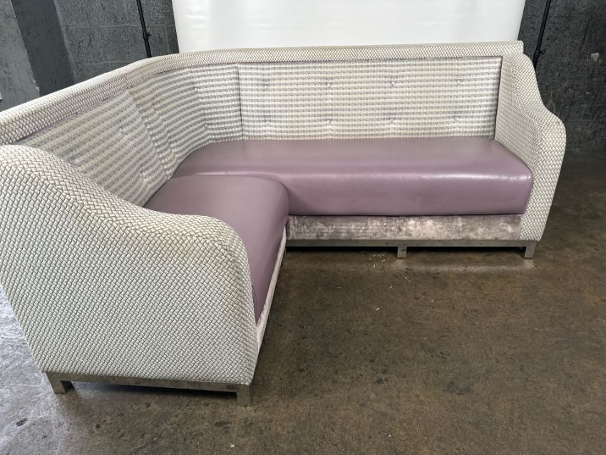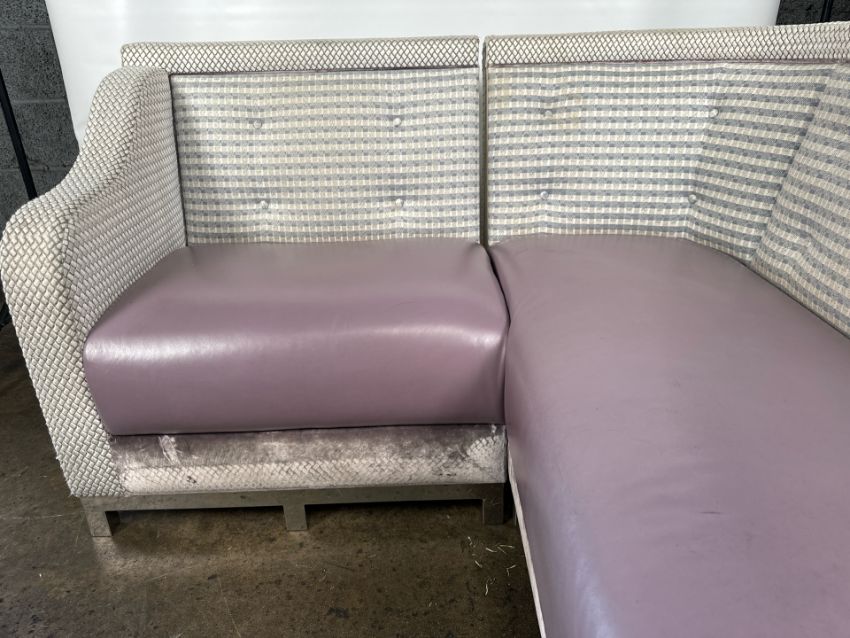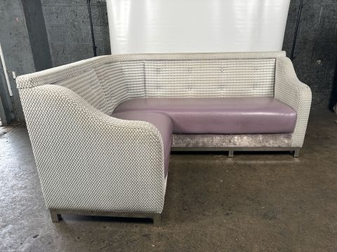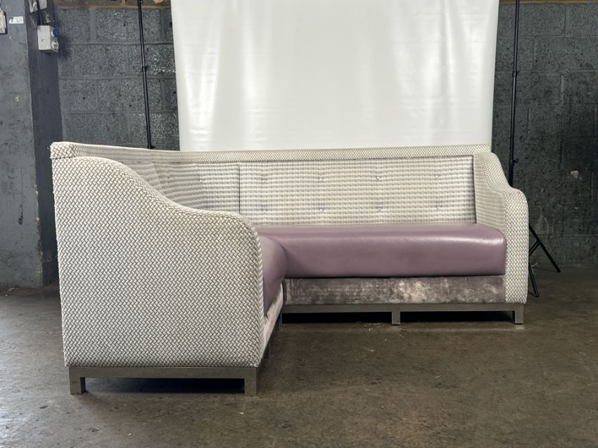 Ben Whistler Banquette Sofa Commissioned by Robert Angell Designed for The BerkeleyThe banquette has been upholstered in a combination of three different fabricsCan be seen pictured in The Collins Room at The Berkeley for illustrative purposes only Approximate Dimensions: Height - 85cm Width - 150cm Depth - 145cm Location - Unit 11 Ref - 59