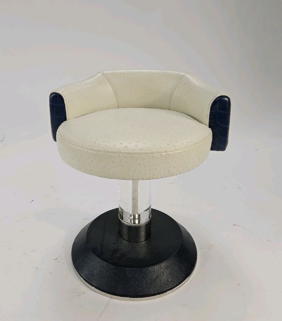 Signs of general wear as shown Ostrich Leather Swivel stool Approximate Dimensions: Height - 52cm Width - 52cm Depth - 52cm Location - G7-2