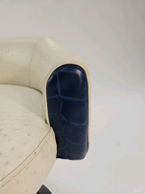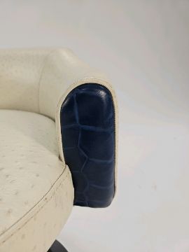 Signs of general wear as shown Ostrich Leather Swivel stool Approximate Dimensions: Height - 52cm Width - 52cm Depth - 52cm Location - G7-2