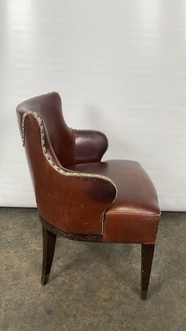 A Pair of Brown Leather Chairs Signs of use Approximate Dimensions: Height - 85cm Width - 50cm Depth - 60cm Ref - 237 Location - Unit 11