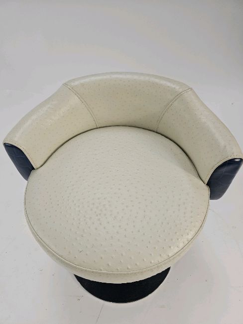 Signs of general wear as shown Ostrich Leather Swivel stool Approximate Dimensions: Height - 52cm Width - 52cm Depth - 52cm Location - G7-2