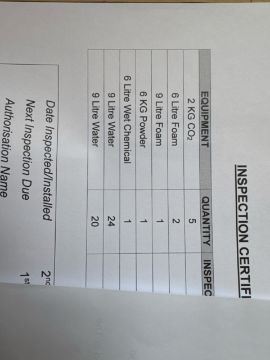 Includes Water, Foam and CO2 Extinguishers