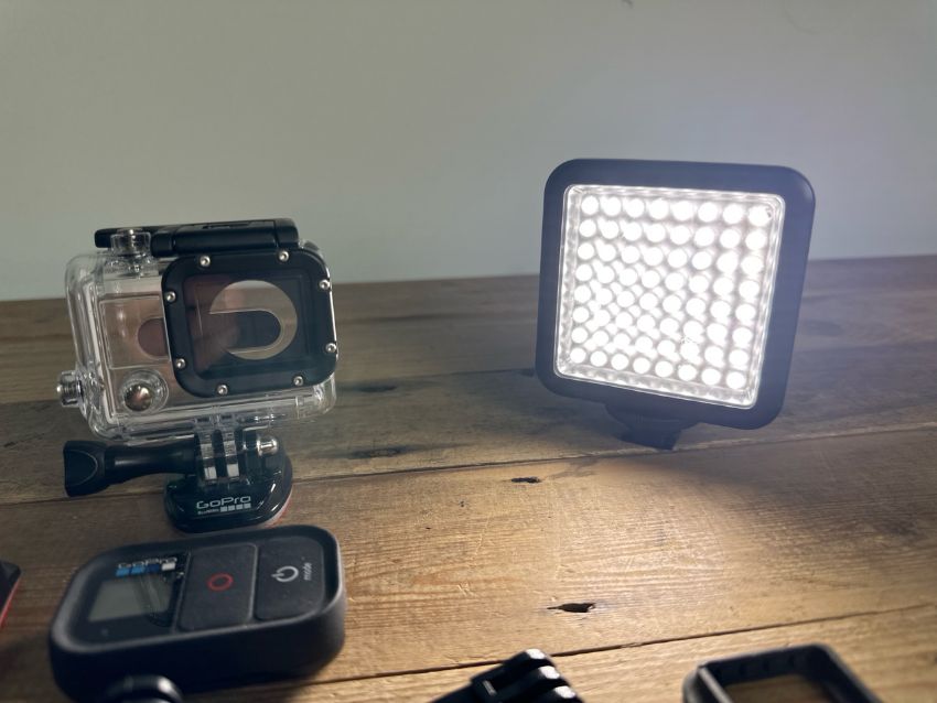 Includes: x1 Waterproof GoPro Case x1 GoPro Remote Control x2 Sticky Mounts x1 LED Light (Battery Powered- Working) x3 Mount Clips x2 Spare parts for case x1 Viewfinder surround (Rubber)