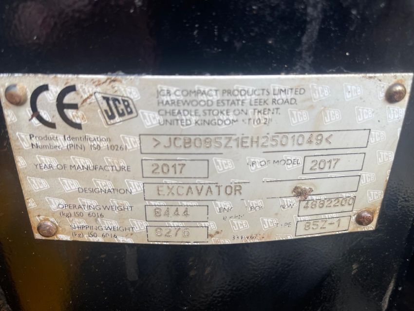 2017, JCB 85Z EXCAVATOR (4715 hours)