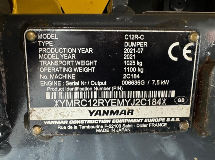 2021 - Yanmar C12R-C Dumper (255 hours)