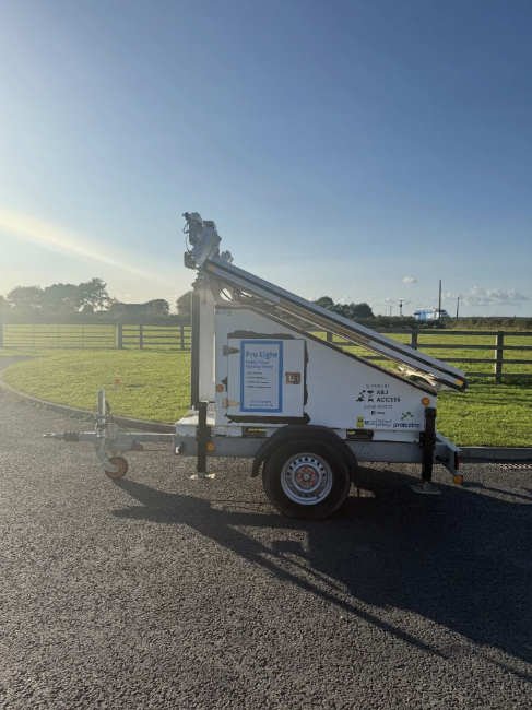 Prolectric ProLight Solar Lighting Tower is the UK’s only mobile solar lighting tower that operates reliably all-year round, even during winter. This solar powered light tower provides high-power lighting without noise, emissions, or the need for refuelling, making it an excellent alternative to traditional diesel lighting towers. Perfect for infrastructure projects, construction sites, and outdoor events, the ProLight offers easy remote monitoring and significant carbon savings.