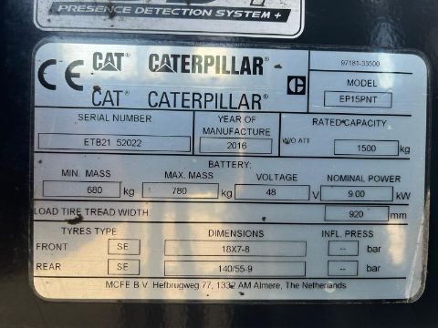 2016, CATERPILLAR - 1.5 Tonne, Gas Forklift