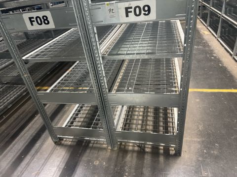12 Bays of Back to back Dexion Metal Shelving Made of 14 Frames and 84 Shelves Approximate Dimensions: Frame Height - 260cm Frame Width - 60cm Shelf Length - 95cm Shelf load - 75kg Bay load - 525kg Ref - 72 Location - Main Building 2nd Floor Please send a copy of your RAMS and public liability insurance at least 48hrs before collection to info@ncmauctions.co.uk