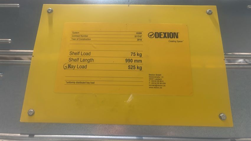 Shelf load - 75kg Bay load - 525kg