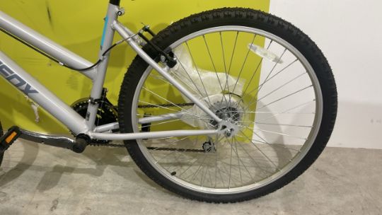 This is an ideal bike to ride around the city and your local area and has been designed with reliability and comfort in mind. Indexed gears make the Synergy great to ride to take out and about without having to worry about maintenance, while the comfortable riding position means that you can hop on an off as you please without worrying about aches and pains. If your idea of cycling involves lots of LYCRA® and aerodynamic sacrifices then this bike probably isn’t for you. But if you’re looking for a bike that allows you to ride to your local cafe or library, ride to work, or just catch up with friends, then look no further! Alloy rims are lightweight Step-through frame shape makes it easy to get on and off V- brakes for reliable stopping in all weather conditions Frameset Frame: Steel 26 inch step-through rigid Fork: 26 inch rigid fork with V-brake pivots Wheels Rims: 26 x 1.75, alloy, 36H Hubs: (F) Steel, 100 x 140mm, nutted (R) Steel, 130 x 170mm, nutted, freewheel Tyres: 26 x 2.125 MTB tyres Drivetrain Pedals: Black, plastic Front Derailleur: Shimano Tourney FD-TZ30, 3-Speed, 28.6mm clamp Rear Derailleur: Shimano Tourney TY300B, 6-Speed Shifters: Shimano Revoshift SL-RS35, 6x3-Speed Chain: KMC HP6L Crankset: Steel triple chainwheel, 24/34/42T, 170mm cotterless crank Rear Cogs: Shimano MF-TZ500, 14-28T, 6-Speed Components Handlebar: Steel. Diameter: 25.4mm. Width: 600mm. Rise: 30mm. Stem: Steel quill stem, 22.2mm Brakes: Alloy V-Brake Brake Levers: Alloy 3 Finger V-Brake Levers Saddle: MTB, Black Steel Rails Seatpost: Steel, 25.4mm This bike has no front reflector