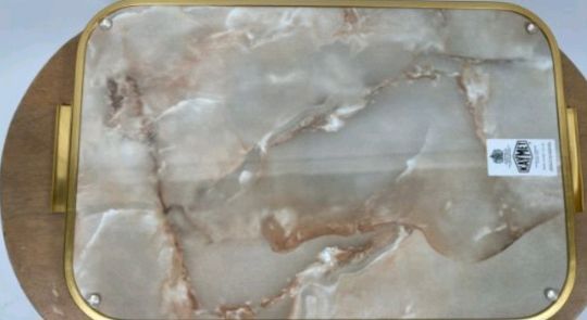 Kaymet Marble Ribbed Tray Gold W/ White Marble