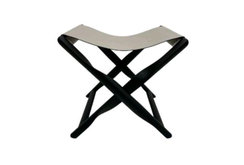 Incorporating natural materials in a modern aesthetic, this versatile stool doubles as a luggage rack to add function and style in any guest room or walk-in closet. The foldable design boasts a grey leather cover and a black wood frame whose legs showcase an exquisite helicoidal shape ("elica" means "helix" in English).