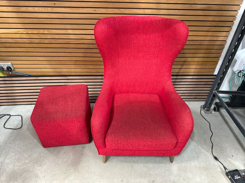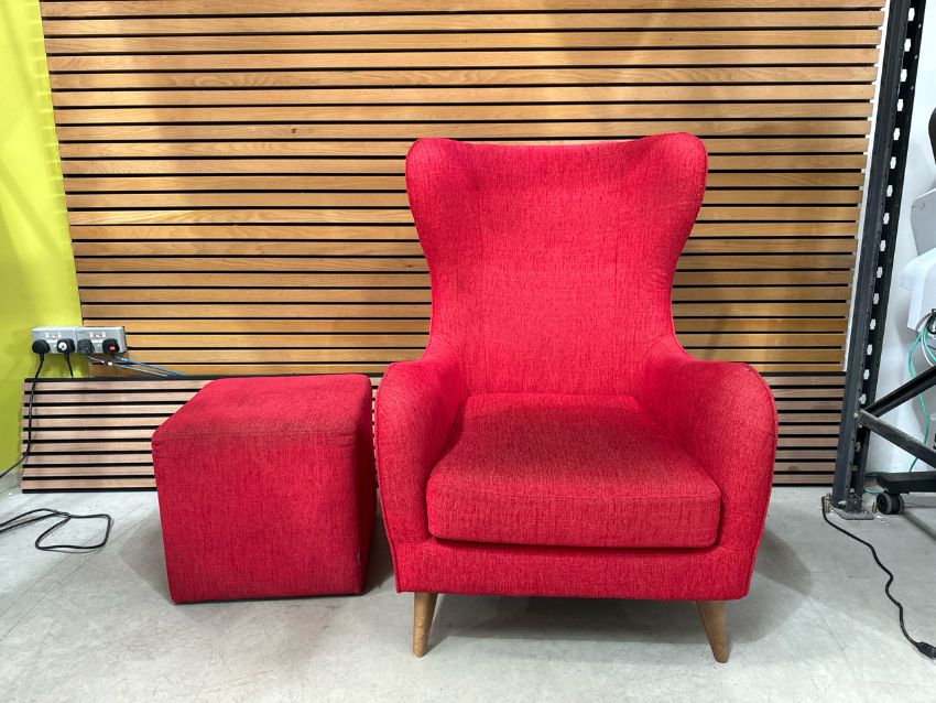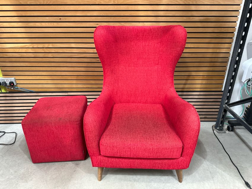 Sits High Back Fabric Armchair & Footstool