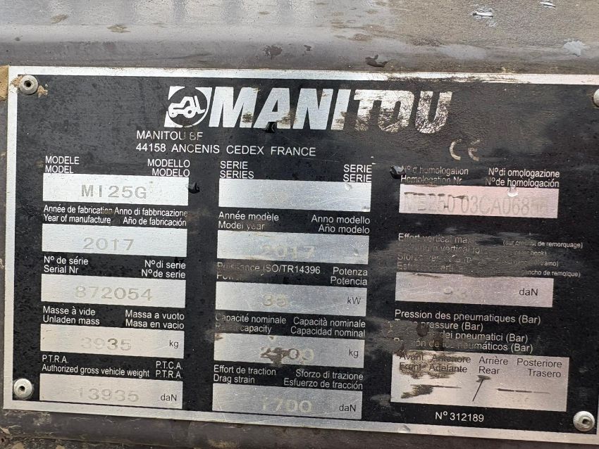 unladen mass 3935kg rated capacity 2500kg