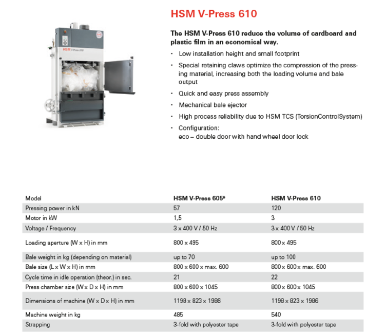 The HSM V-Press 601 reduces the volume of cardboard and plastic film in an economical way