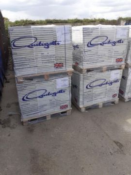 This product is brand new and manufactured by Quiligotti in the UK. They are not seconds, defective or returns. All pallets are heat sealed for safe transportation. Please note there is a forklift on site to load pallets for collections on prior arranged appointment.