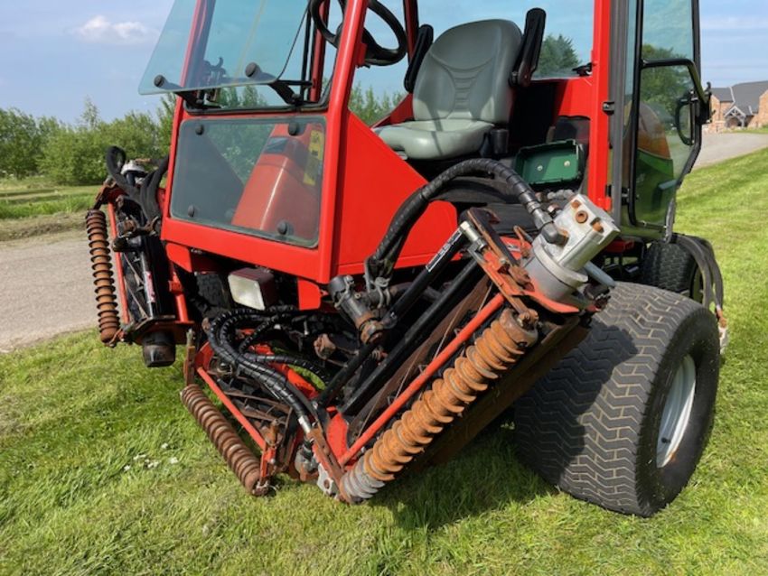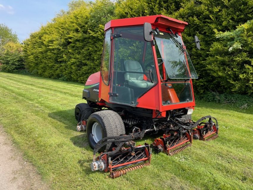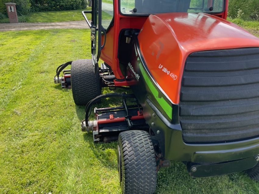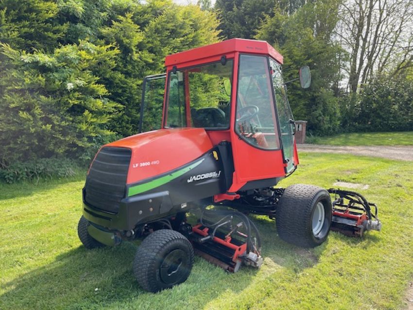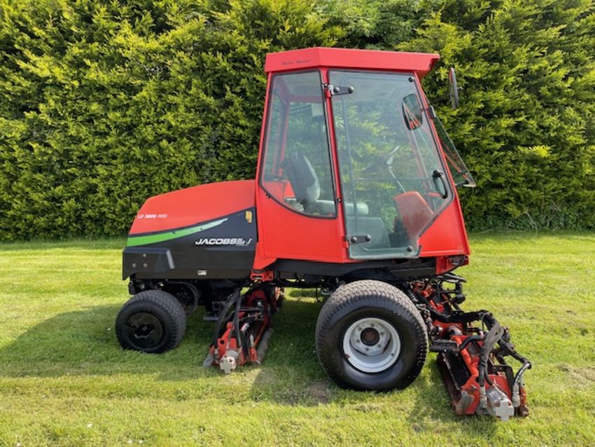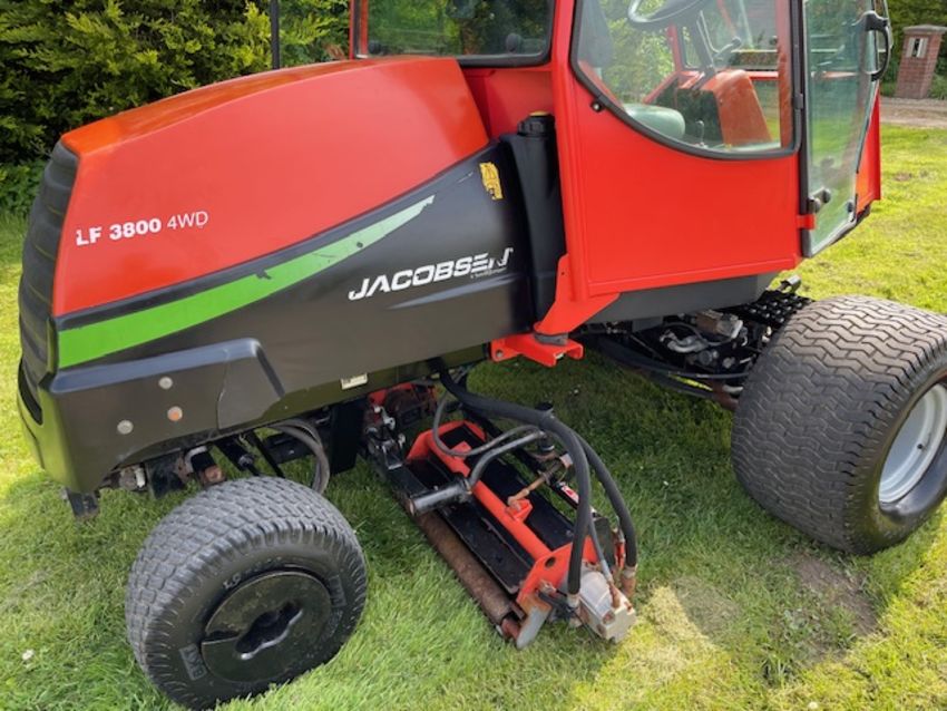 The Jacobsen LF3800 is a fairway mower designed for high-quality cutting and enhanced operator comfort. This lightweight fairway mower LF-3800, has been designed to accommodate a wide range of golf course terrain and grass conditions. They build them around a common platform, using common cutting units and components so that superintendents can ‘mix and match tractors and cutting units as needed. LF-3800 is designed for enhanced operator comfort, along with high-quality cutting. Power steering and tilt steering wheel are standard equipment, as is joystick reel positioning. Jacobsen’s patented FlashAttach reel-mount system permits easy changeover to vertical reels or other bladed reels. Reel-to-bedknife adjustments are made with a single wrench. Independent reel-motor relief valves increase cutting torque with lower hydraulic circuit pressures.