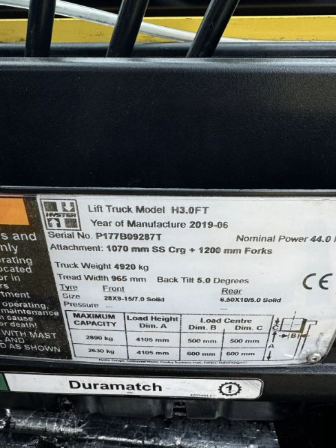 Hyster 3 Tonne gas Forklift Truck 2019