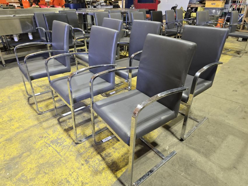 6x Grey Faux Leather and Chrome Dining Chairs
