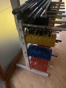 To include:1x Rack 25x Barbells 55x Plate Clips 150x plates included:Jordan 46x 1.25KG 40x 2.5KG 46x 5KGS4L 28x 1.25 22x 2.5KG 17x 5KG