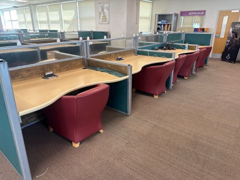Includes desk dividers and pedestal units under desks