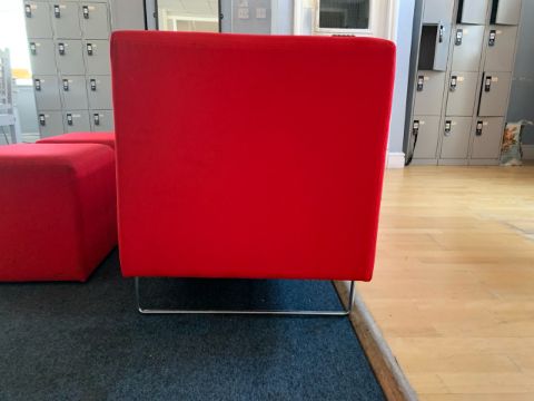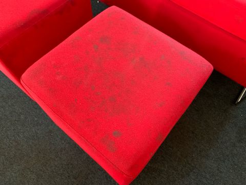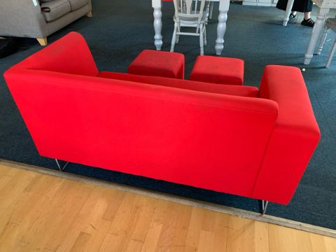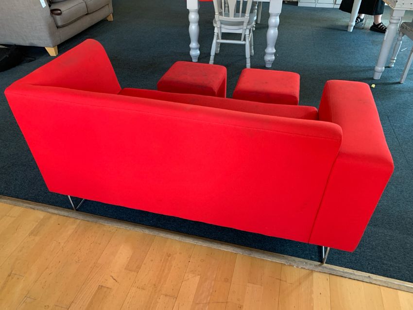 Red Felt Two Seater Sofa With 2 x Foot Stools - NO RESERVE