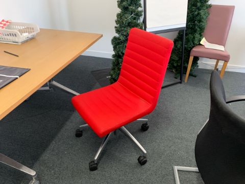 Wheeled Rectangular Straight Desk & Red Felt Wheeled Office Chair - NO RESERVE