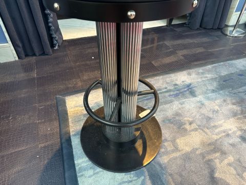 Navy leather topped stool with studded detail, metal cylindrical legs and black metal base