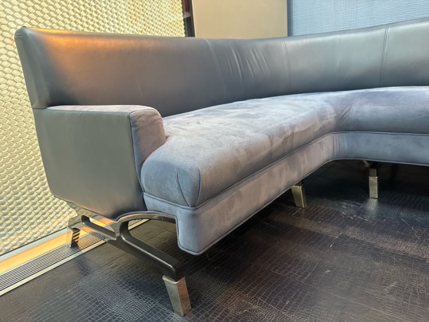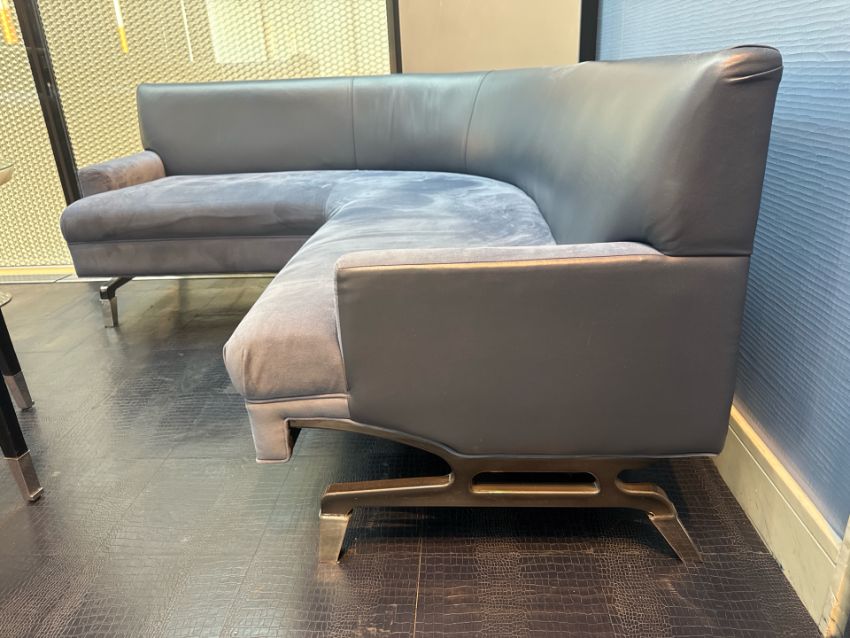 Custom Ben Whistler Navy Leather Back Corner Sofa, Commissioned by Robert Angell