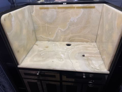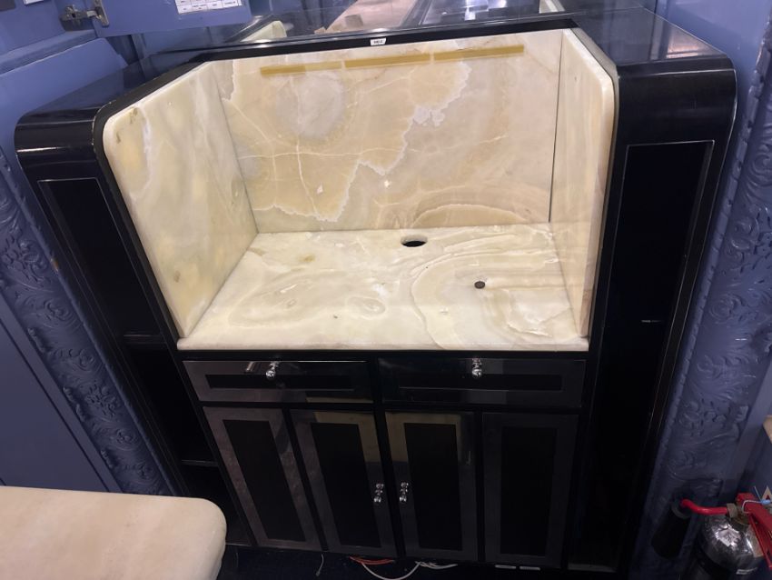 Custom Marble Topped Wooden Front of House Stand, Commissioned by Robert Angell Design