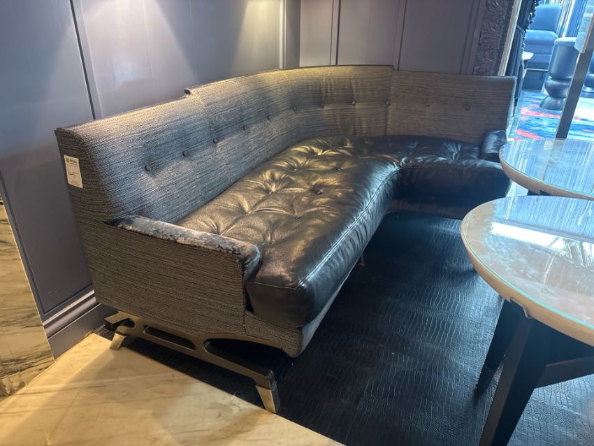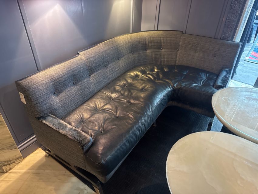 Iconic Navy Leather 3 Seat Corner Sofa, Commissioned by Robert Angell Design for The Berkeley