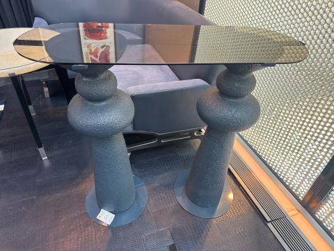 Metal embossed legs and base with black glass top