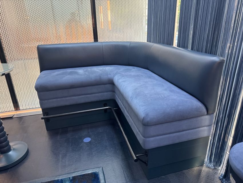 Iconic Ben Whistler Navy Leather Corner Banquette Seat, Commissioned by Robert Angell