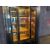 Wooden unit with 3 vertical glass doors, storage cupboards, drawer and chrome accents